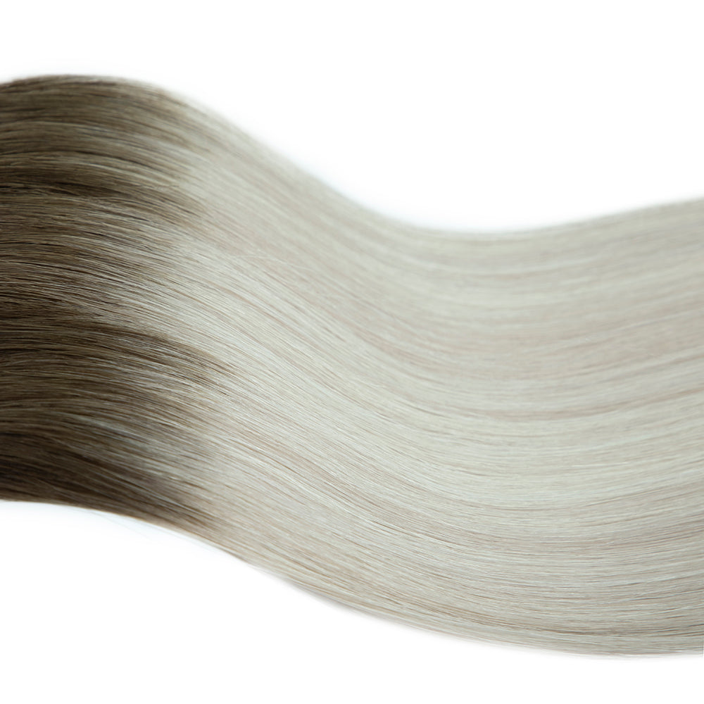 A unique ashy brunette to platinum blend, offering a high-contrast yet natural balayage effect.