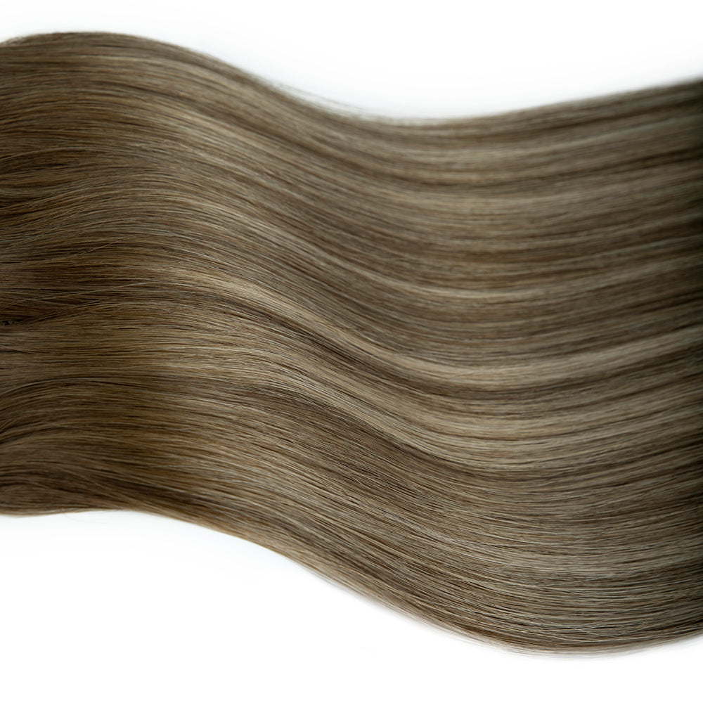A light brown to golden blonde transition, giving the perfect sun-kissed balayage look.